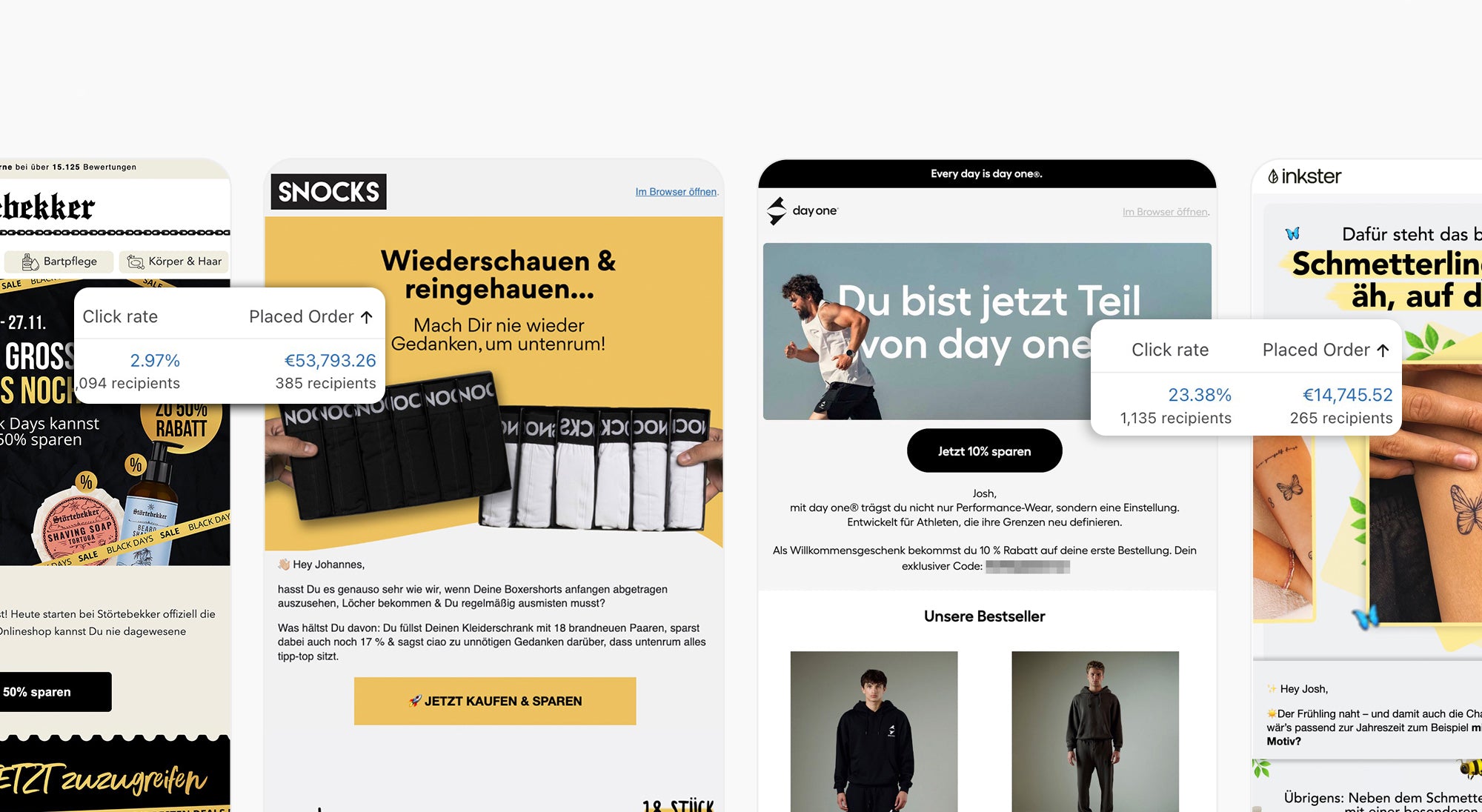 Hey, I'm Josh. I first built email marketing at Snocks and then worked with e-commerce brands like Inkster, day one®, and Störtebekker. This helped me generate over €30 million in revenue through email alone—for a wide variety of D2C brands.
