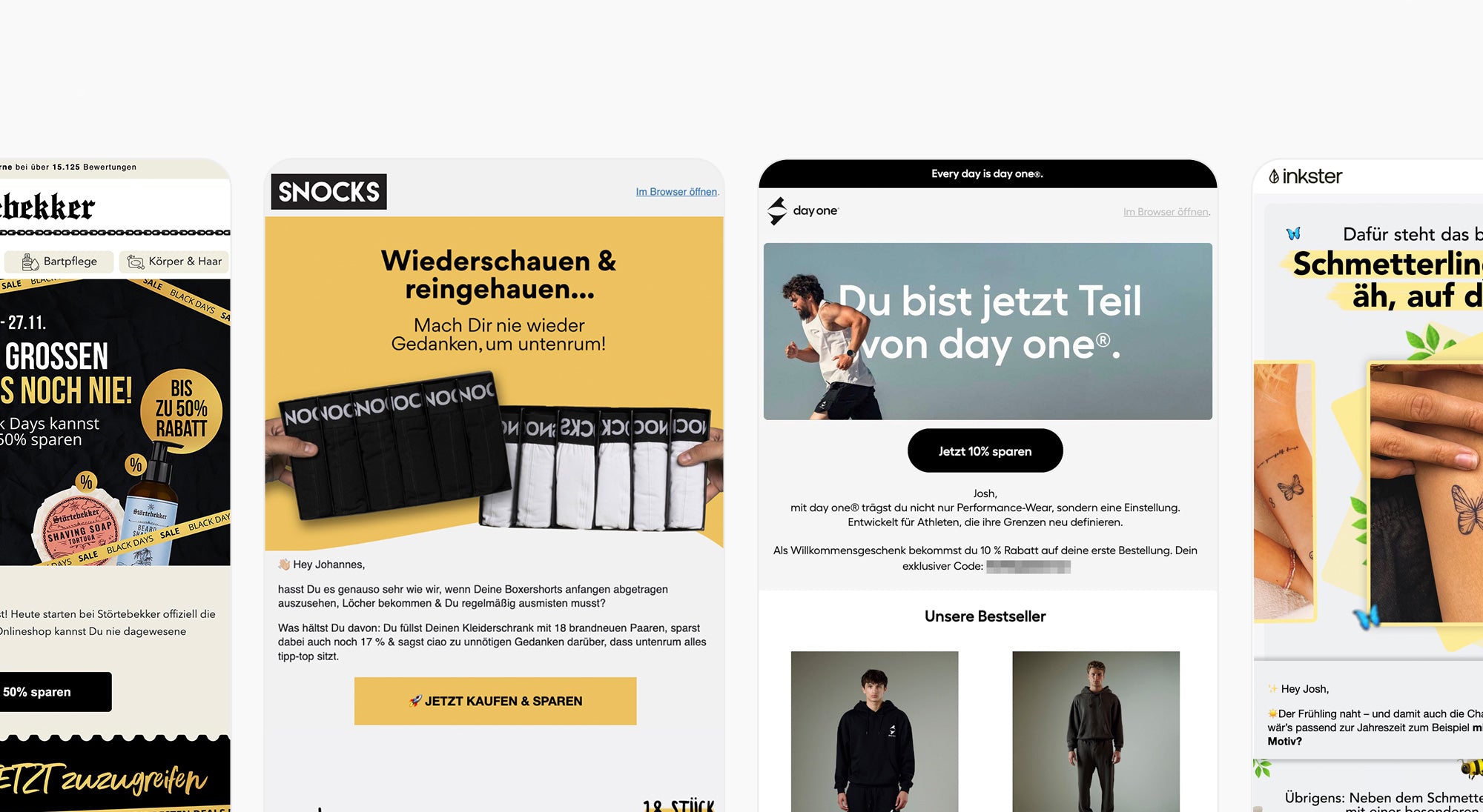 Hey, I'm Josh. I first built email marketing at Snocks and then helped e-commerce brands like Inkster, day one®, and Störtebekker scale.