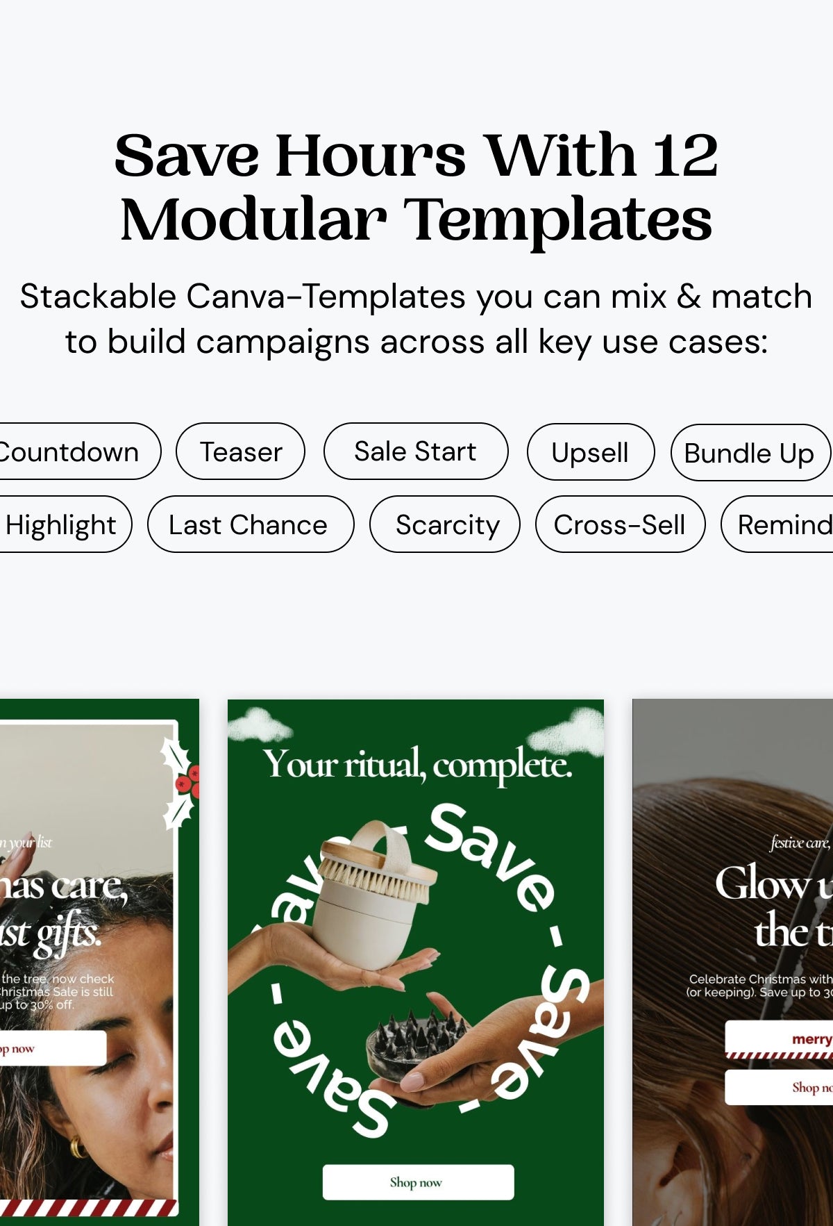 Die Templates sind speziell für E-Commerce-Marken entwickelt – mobiloptimiert und produktorientiert. Sie rücken das in den Fokus, was wirklich zählt – für messbare Ergebnisse.