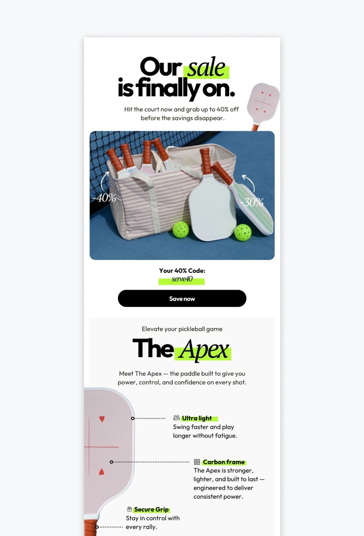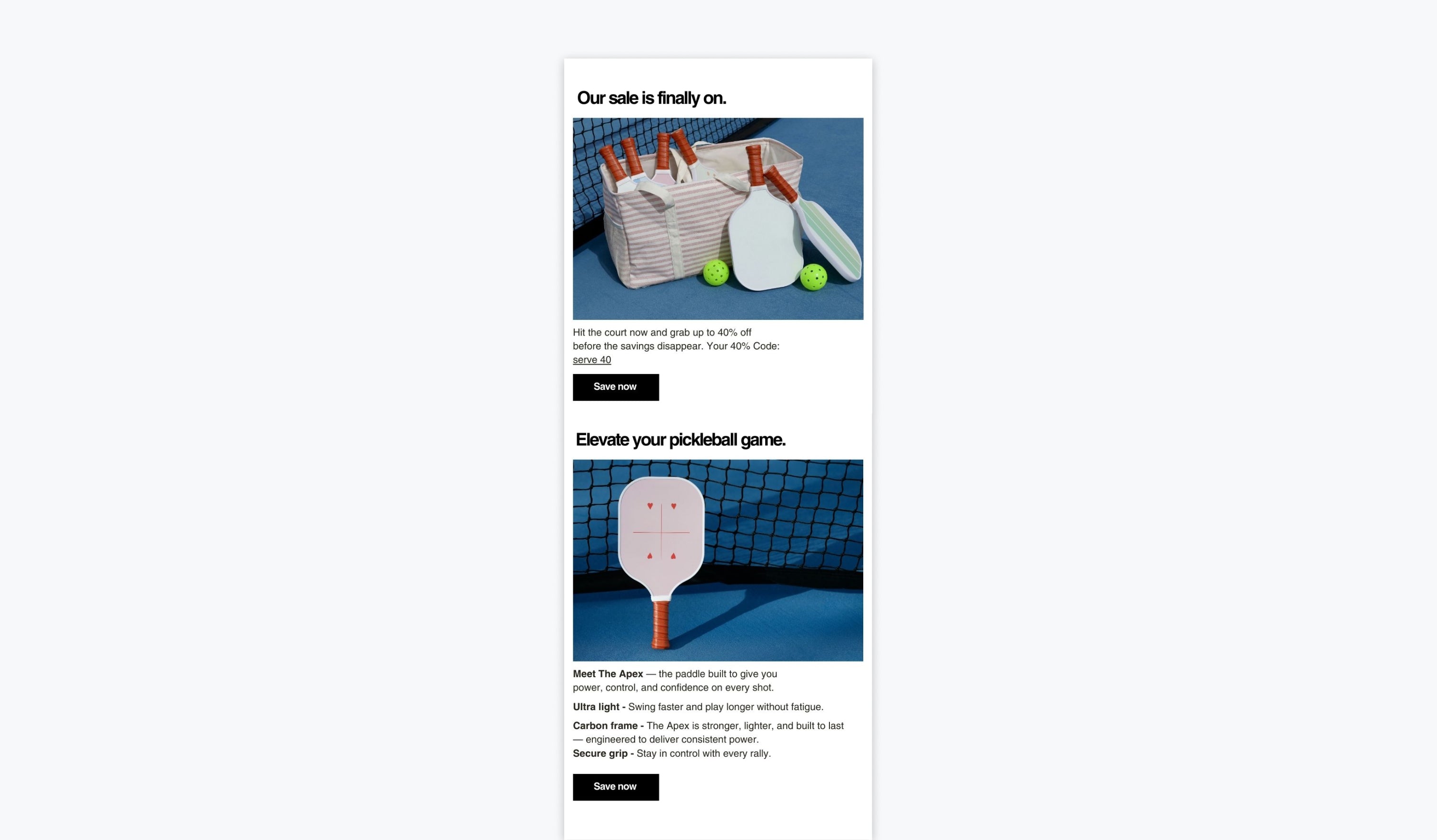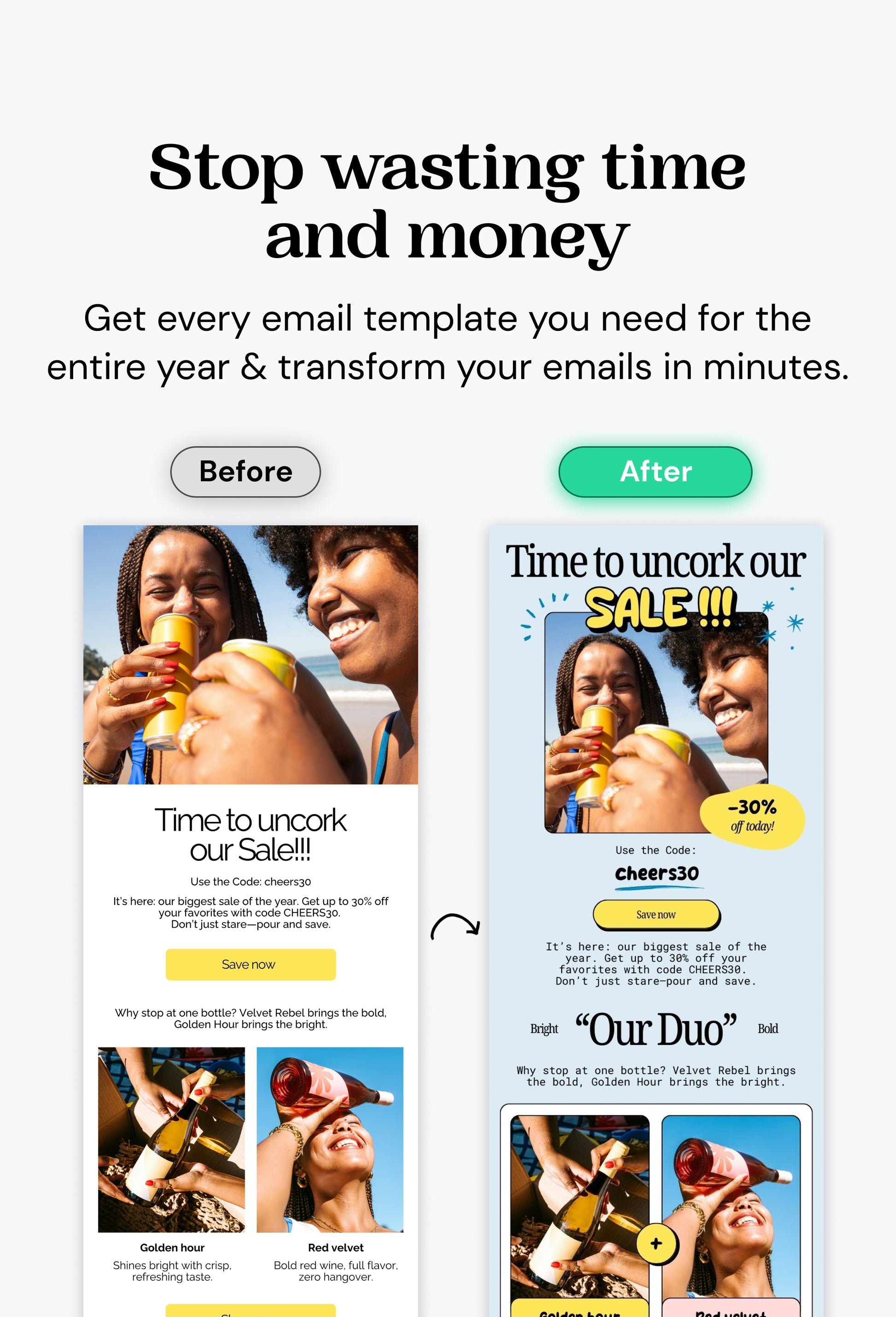 Passe die Templates einfach an deine Brand an und versende professionell designte Kampagnen – ohne Designer, ohne Aufwand.