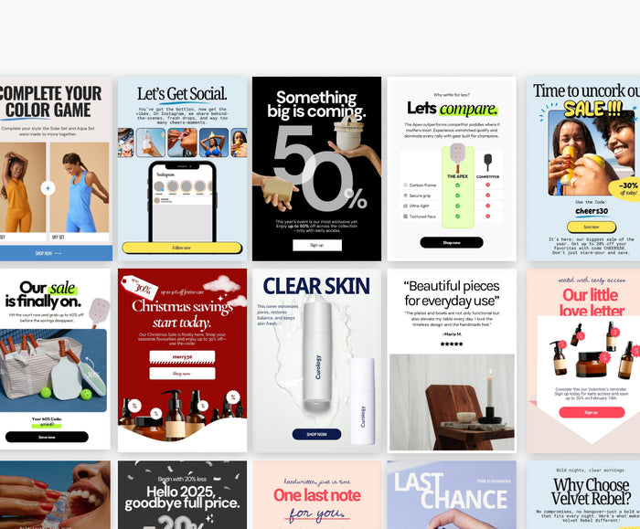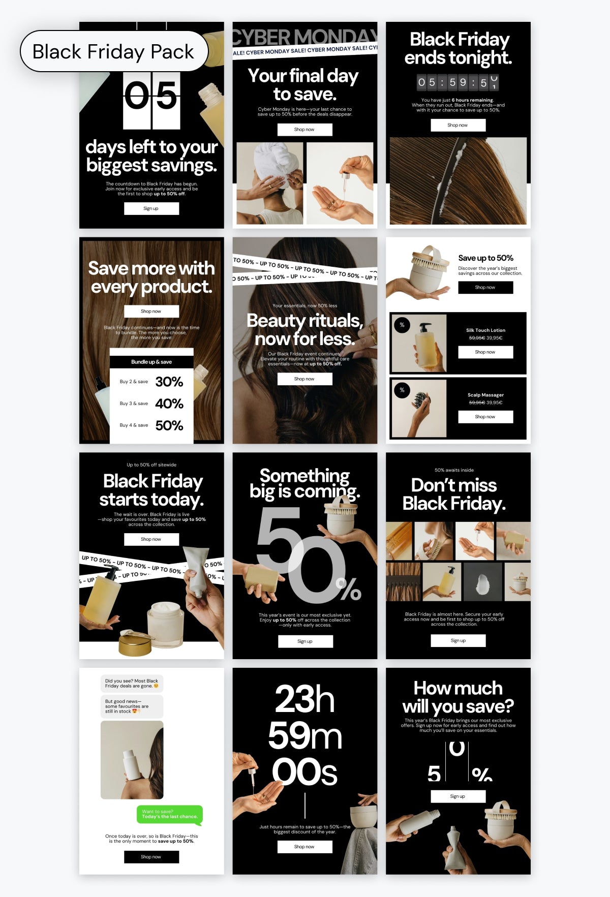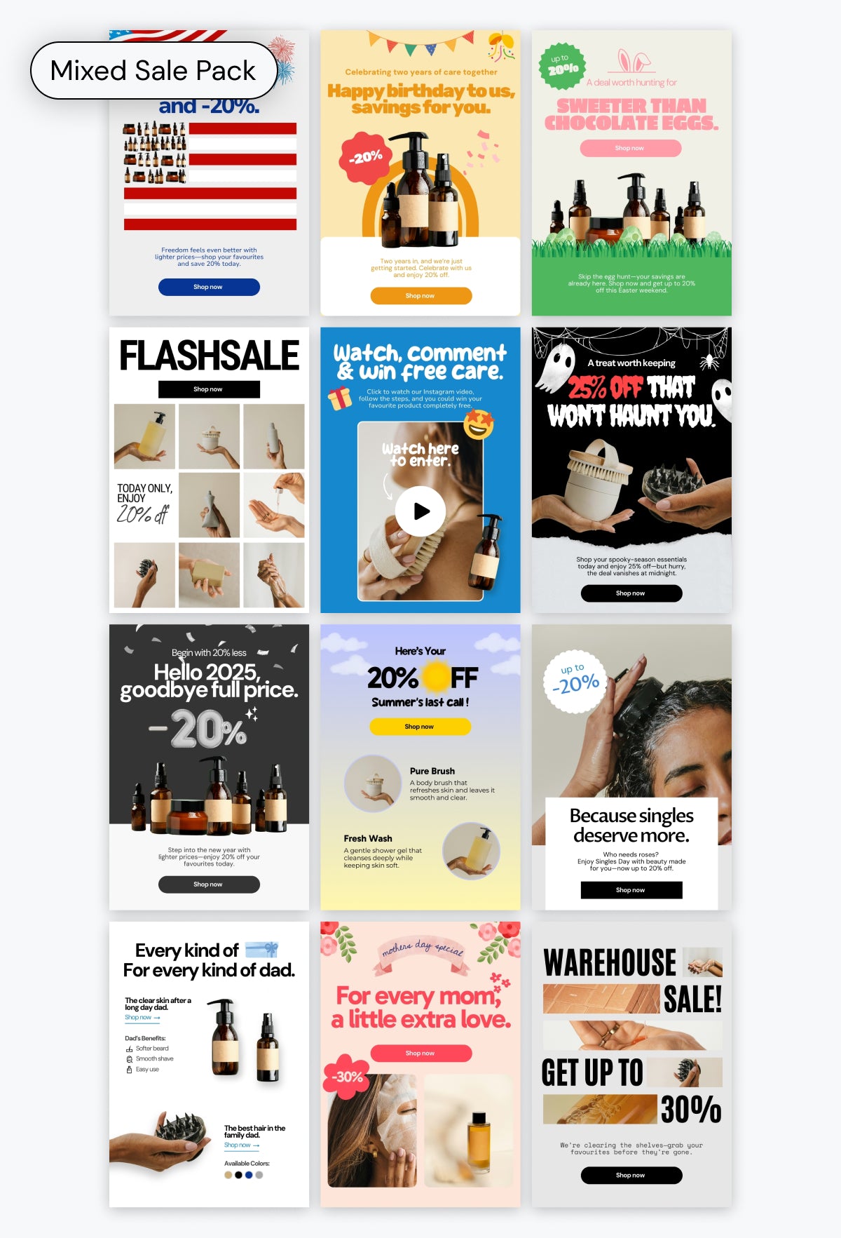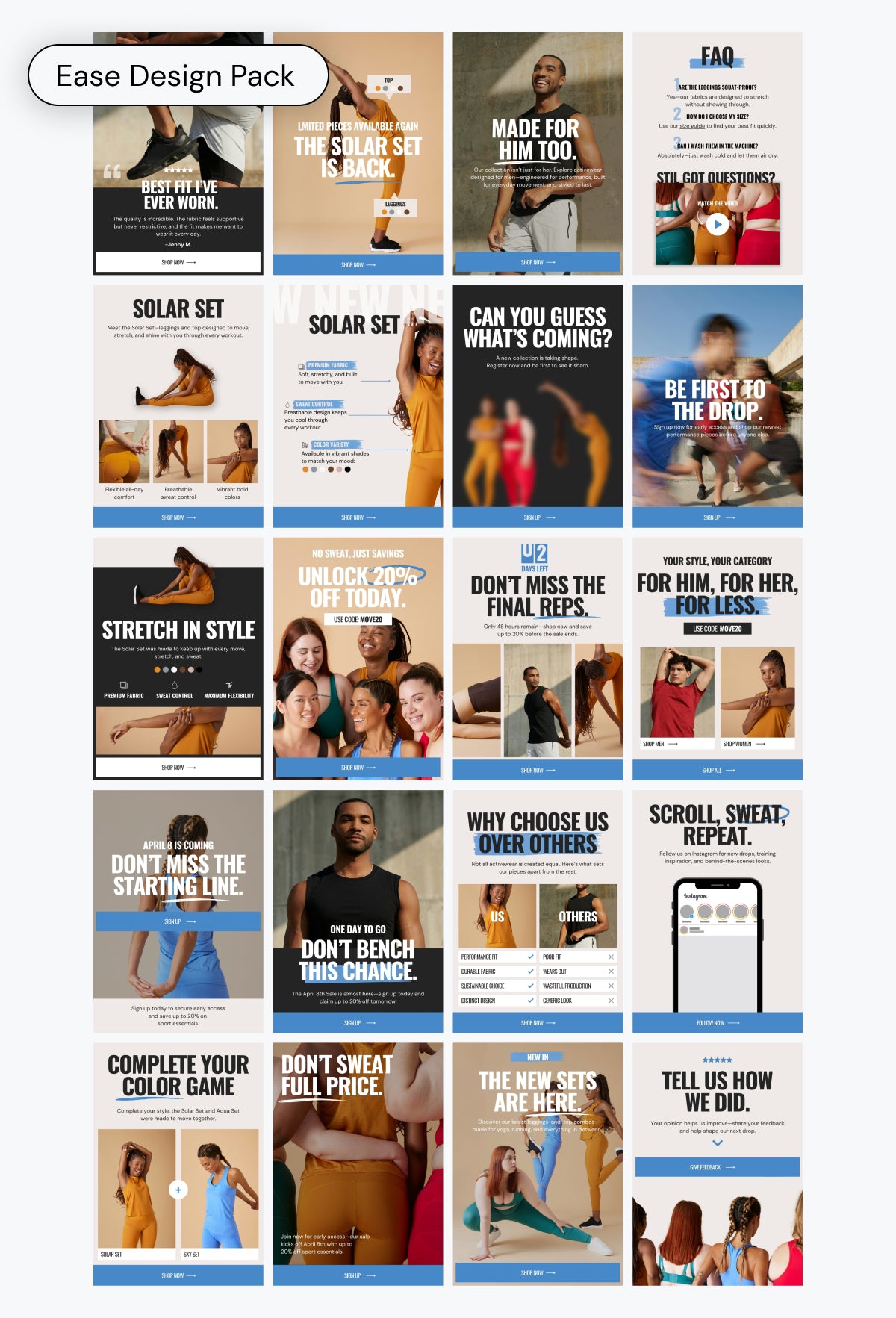 Die Templates sind speziell für E-Commerce-Marken entwickelt – mobiloptimiert und produktorientiert. Sie rücken das in den Fokus, was wirklich zählt – für messbare Ergebnisse.