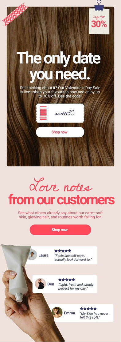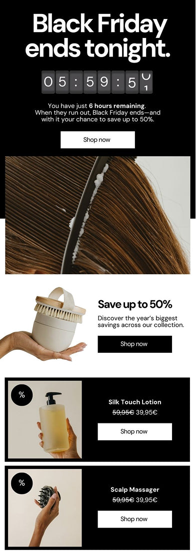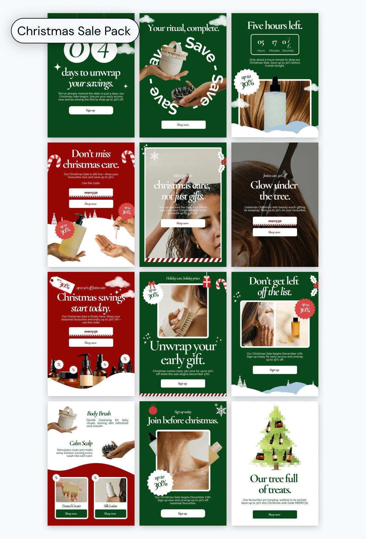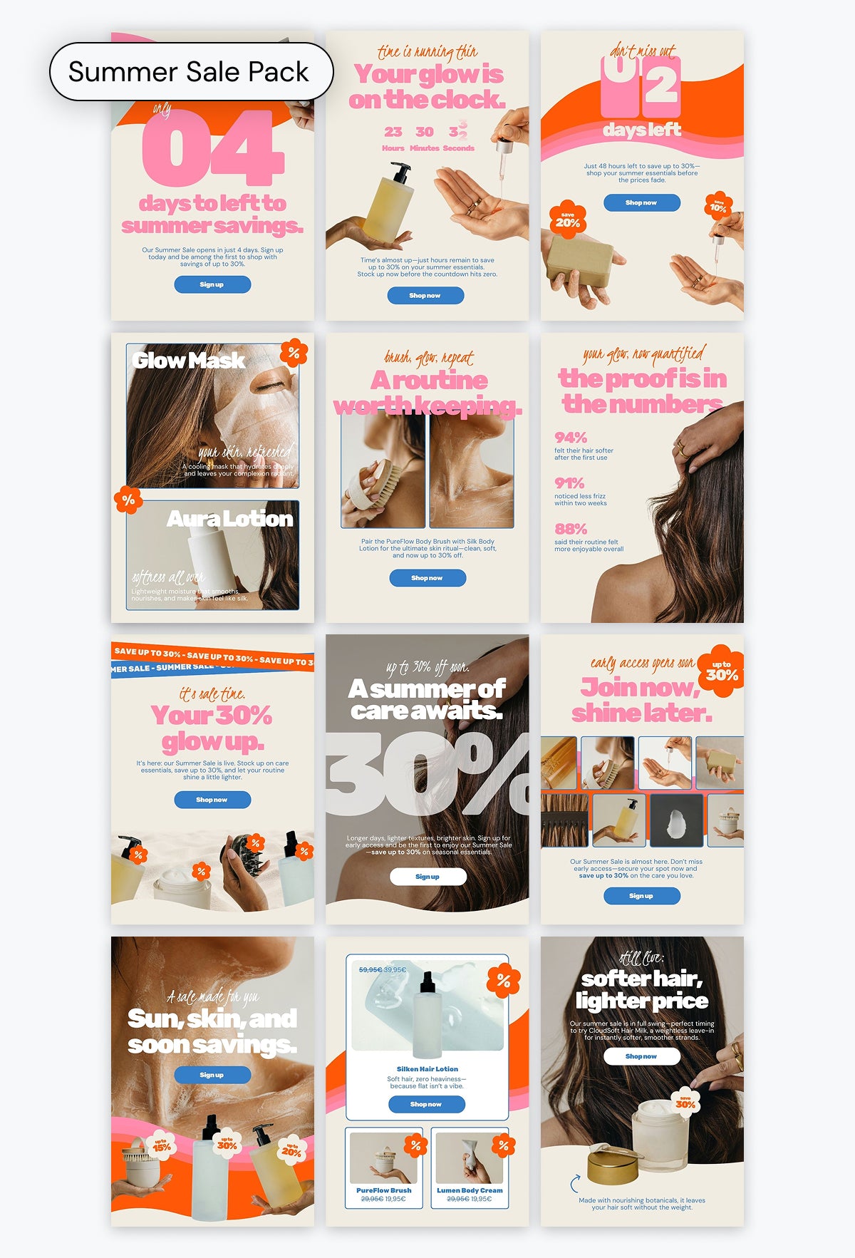 Absolut. Die Templates sind vollständig in Canva editierbar, sodass du sie ganz einfach auf dein Branding abstimmen kannst. Viele Marken nutzen sie sogar als Grundlage für ihre eigenen, individuell gebrandeten E-Mail-Designs.
