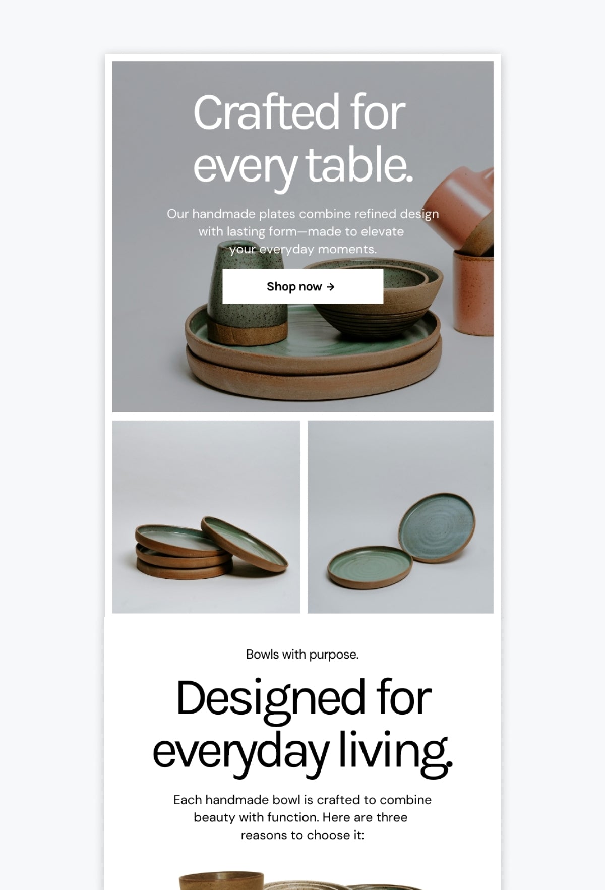 Die Templates sind speziell für E-Commerce-Marken entwickelt – mobiloptimiert und produktorientiert. Sie rücken das in den Fokus, was wirklich zählt – für messbare Ergebnisse.